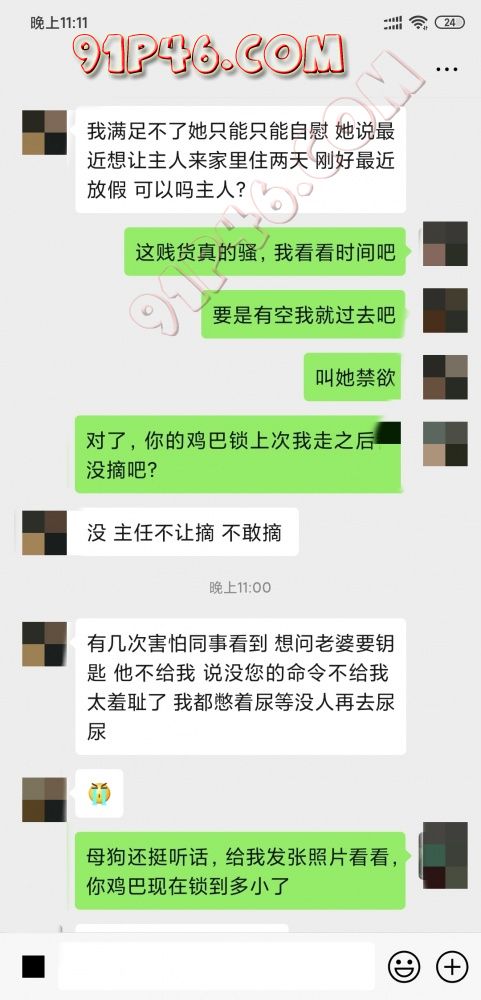 闲来无事看手机,突然看到绿王八给我发微信发骚,邀请我过几天去他家住,想让我艹她老婆,母狗也是满足不了天天没给他好脸色,刚好也碰上母狗有假期,所以催着绿王八给我发微信,没想到绿王八发了母狗自慰的照片给我看。这还不够,鸡巴锁的照片也发给我了,上次调教完让他带锁,钥匙给了他老婆,看来他老婆快完全沦为我的狗了,只听我的话了,钥匙也不给他了,哈哈哈,没想到他自己还带了肛塞和项圈跑到厕所给我拍了下,真的有够贱,晚上没事发出来让大家看看,等有空去他家住几天再调教一下