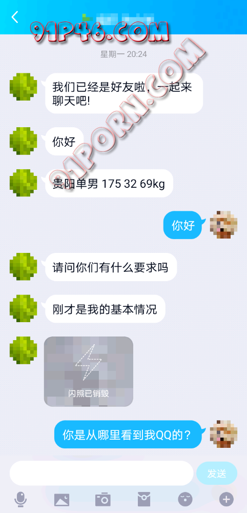 与单男从QQ添加验证通过到实战的聊天过程,由于没有现场照片,所以看官们注意看中间的时间差自行脑补画面,哈哈。