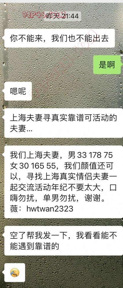 我们上海夫妻,男33 178 75女30 165 55,我们颜值还可以,寻找上海真实情侣夫妻一起交流活动年纪不要太大,口嗨勿扰,单男勿扰,谢谢。薇:hwtwan2323