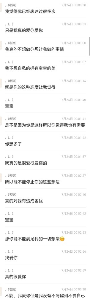 尽力了,但老婆还是没有认同我的想法,老婆不是保守的人,为什么还是不能接受我是绿帽呢?苦恼,(聊天记录顺序可能有点混乱,到可以根据时间来看)