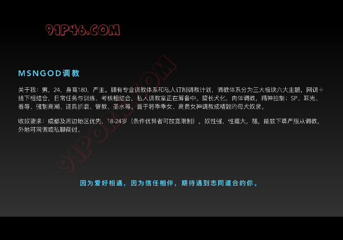 【报名条件】仅单女可报名,年龄18-27,颜值正常,身材正常,无严重疾病,绿码,热爱调教