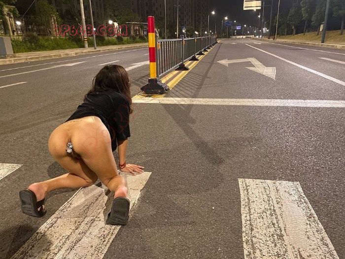 真大胆呀,在马路边露出穿情趣就不怕人家开车看到大喇叭吗?羞耻尬死了