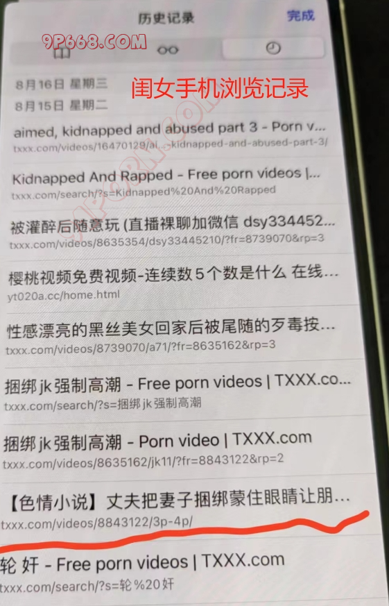 插播一下,前段时间给她闺女买了个苹果14(让她送给闺女,闺女还不知道我的存在)。因为最近闺女精力没有放在学习上,我和她商量查一下她旧手机,是否跟人聊天,聊天内容如何。结果替换下的手机,闺女把qq卸载了。不然没有密码也可以查看她的聊天记录了。不过有意外发现,发现她经常浏览黄片这也验证了她在闺女床上发现电动牙刷的原因了,闺女肯定经常看片自慰。后来借口没收手机,又查看了一下新苹果的浏览记录,还是经常看黄片。
