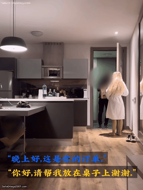 “晚上好,这是你的订单。”