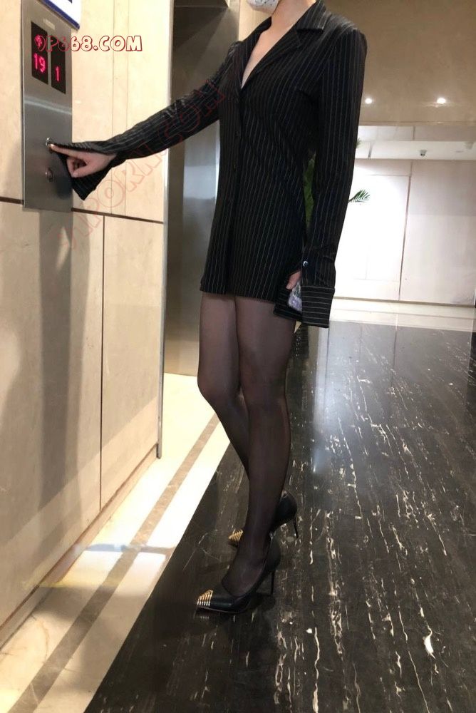 黑衬衫黑丝+黑色高跟鞋,太美了我的天,极品美女