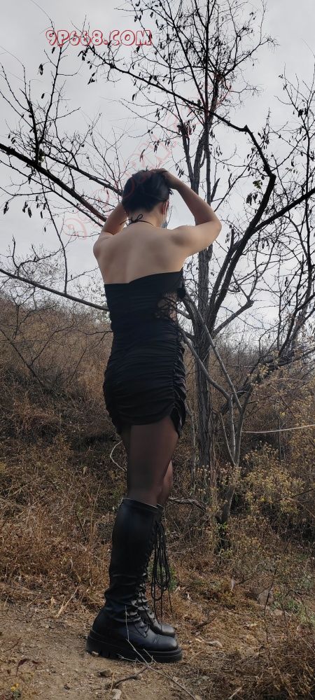 姐姐的背真美!黑丝靴子搭配起来别有一番风味。