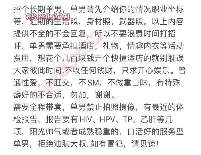 江苏人,在海南工作,35,174,145斤,本科学历,经济时间自由。丁丁长度16厘米,跟特仑苏牛奶盒一样宽;平时坚持健身,体力和身材都还可以,喜欢后入打桩和帮女生口,有服务意识,会SPA,可体检和现场验血,希望有机会完成一场美丽而又难忘的邂逅。