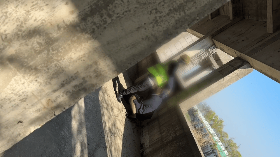 终于等到一个合适的机会和地点,大哥一个人在楼上操作,工友都在下面操作