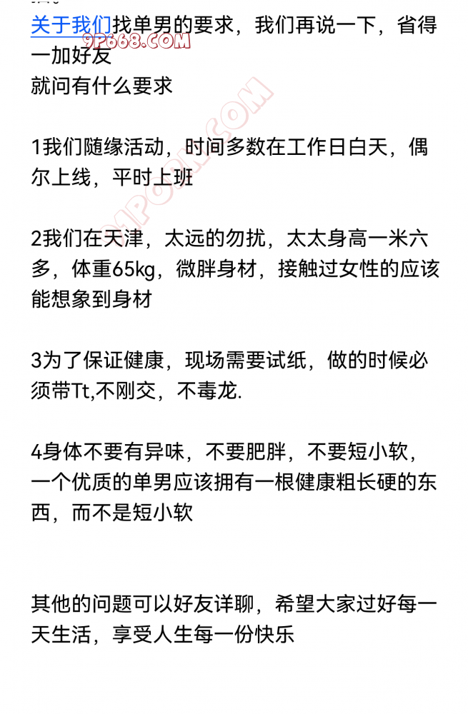 天津同城来顶帖,期待更多作品。如果需要单男可以联系我。