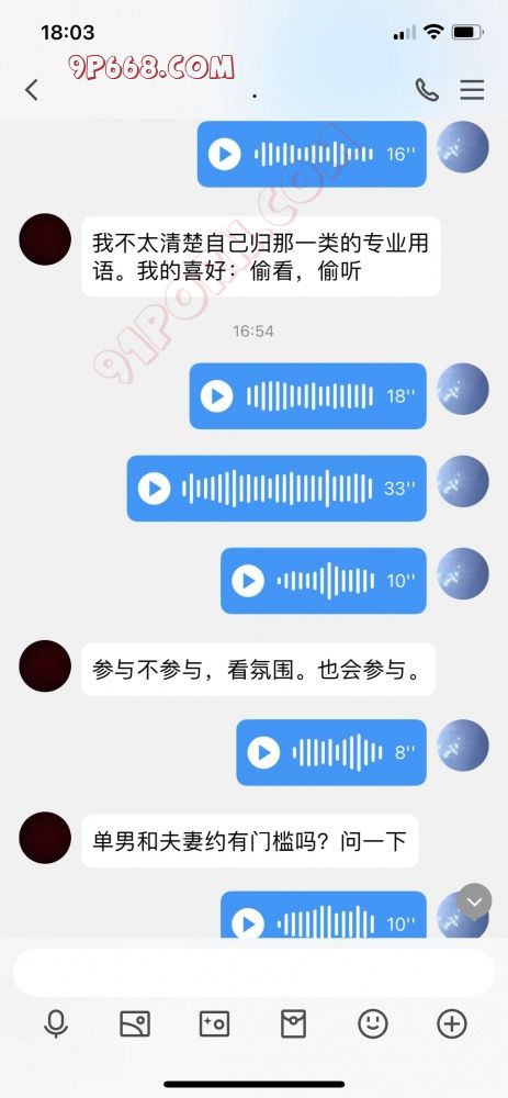 然后也懒得打字了,就语音了几句,他也语音过来了,我还觉得挺真诚,然后就直接说自己是淫妻啥的,具体的看聊天内容;然后我去买菜,回来闲扯了几句,问他是绿帽还是淫妻,他自己也不清楚,就说喜欢偷看,偷听;